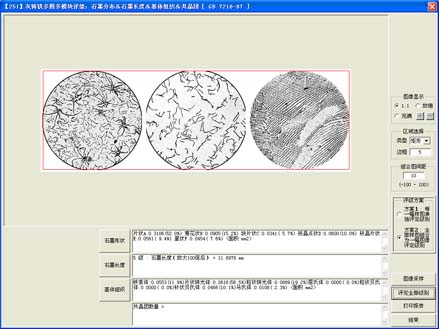 应用本功能模块,可同时装入多幅样图,同时分析出“石墨分布、石墨长度、基体组织、共晶团”等相关数据,并将生成数据自动导入检验报告中。