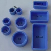 此此产品是我司专业开发为做金相切片时所用, 它是由特殊硅胶材料所制成,特点是材质柔软,可反复使用,节省成本. Ф25,Ф30,Ф40,Ф50mm, 40X25mm 可根据样品大小选择不同直径的镶嵌模,可满足镶嵌特大样品的需要,又节约冷镶嵌料